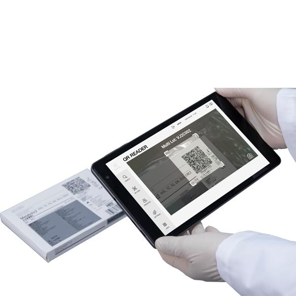 Calibrarea se efectuează prin scanarea codului 2D tipărit pe cutia reactivului cu ajutorul unui dispozitiv mobil. Poate fi făcută și cu ajutorul cititorului de coduri de bare inclus.